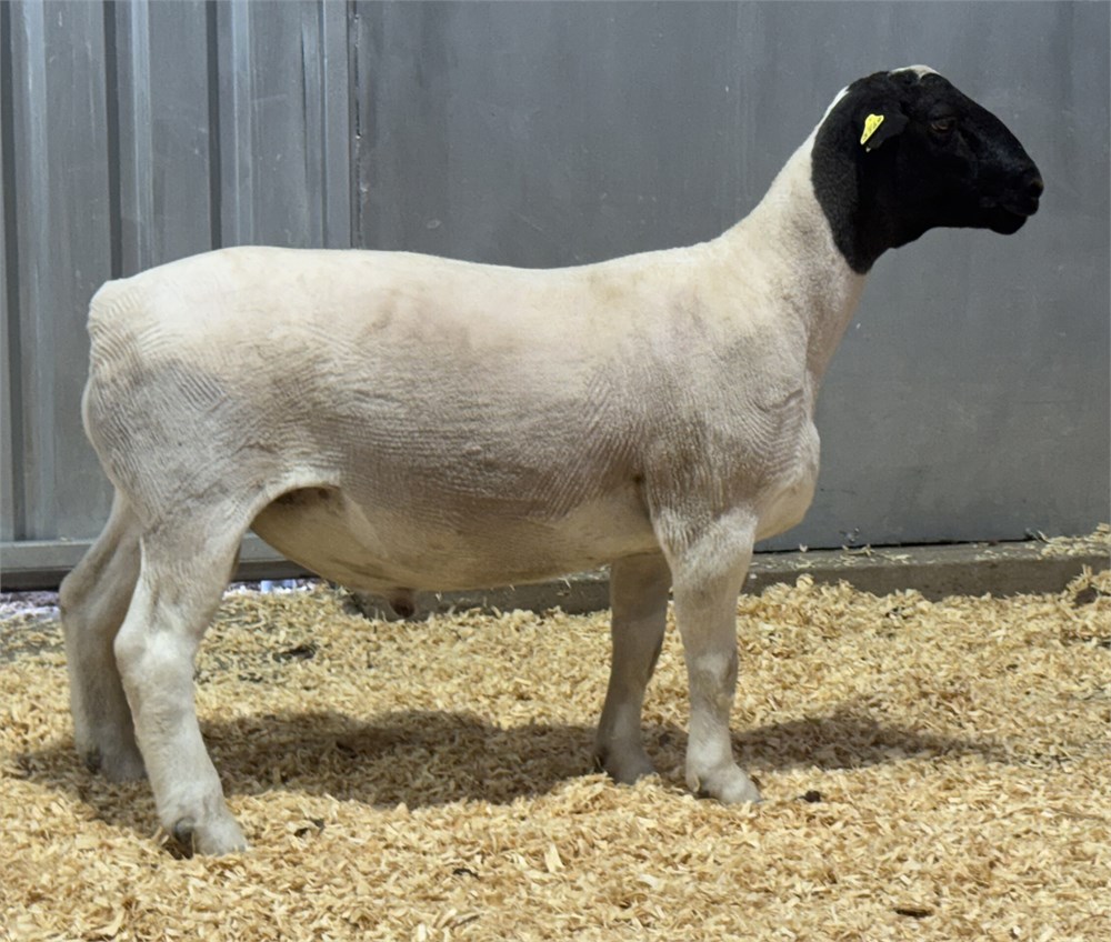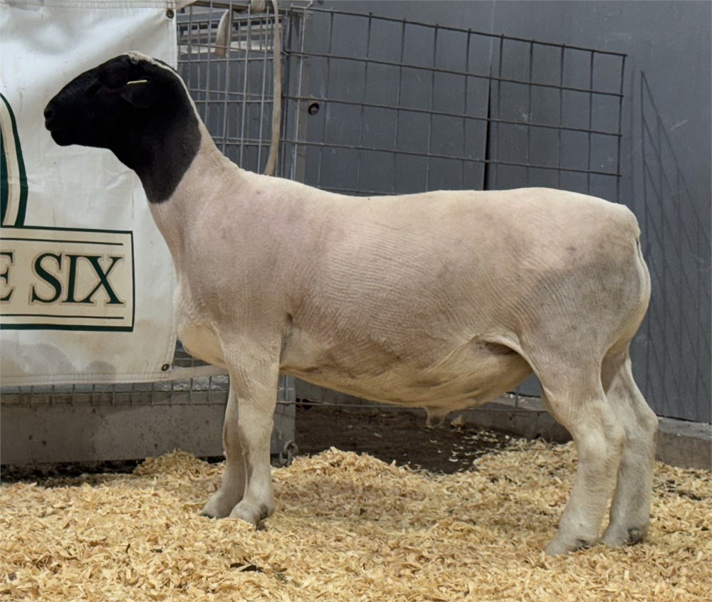 Here is a big January lamb. The more you look at him the more you like him! Just very well made and balanced ram here with that long neck we like to see. Amarula and Churchill in this guy.
