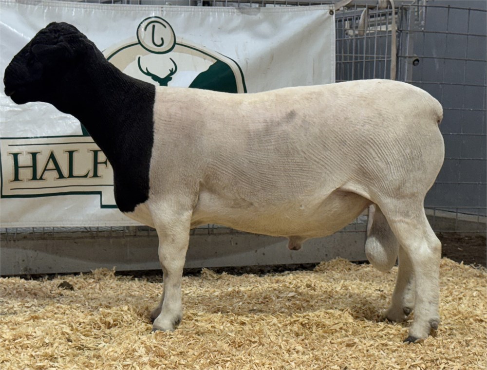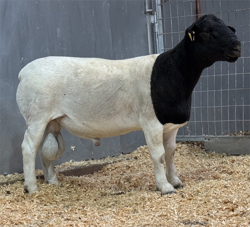 Gorilla! That is what James named this ram. This yearling is the heaviest ram in the sale. He is a rugged and powerful ram that has grown very well. Big head, big bone, and big muscle here.